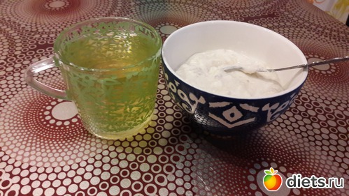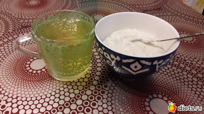 Перекус - творог с кефиром + немного банана (половину съела дочка, поэтому мне досталось около 100г) + отруби + зеленый чай