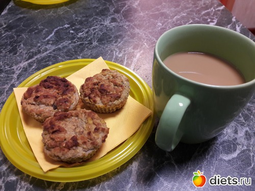 2 завтрак в офисе, кексы те же мои, тыквенно-кокосовые, пересчитала по факту именно их, получилось вообще 58 ккал в 1 шт...мизер!