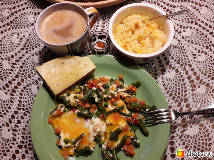 А про порции....если я встала в 5-30, 70 минут интенсивного кардио отработала, и через 3 часа села завтракать, какие там 300 грамм....Я бы даже не сказала, что прям наелась....встала из-за стола с чувством легкого голода, как диетологами положено....