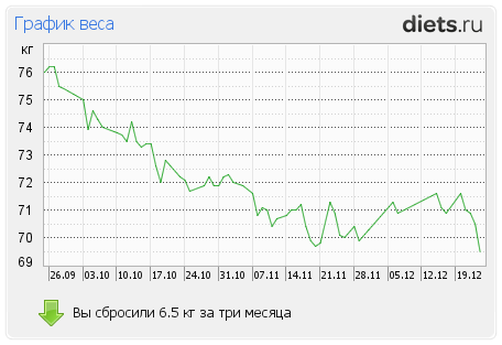 Начальный вес 19.09 - 78 кг, 18.10 - 72,6 кг, 18.11 - 70,4 кг, 24.12 - 69,5 кг