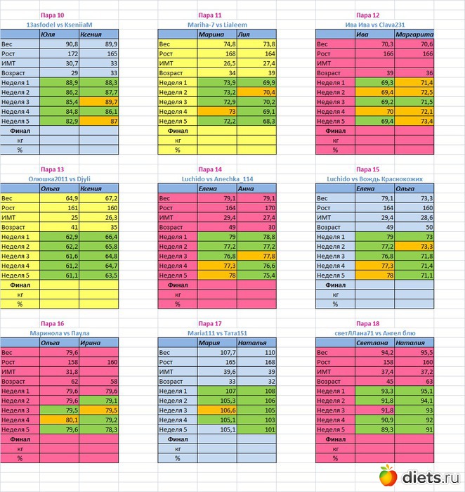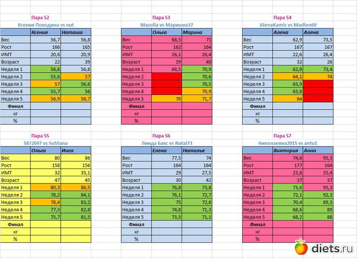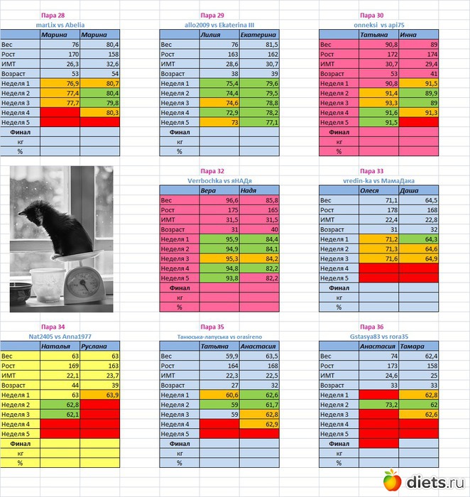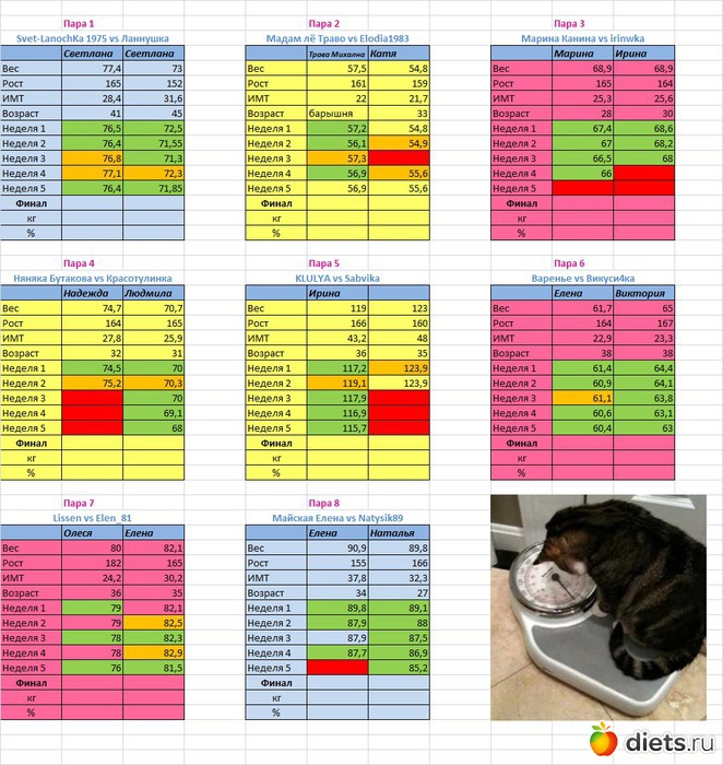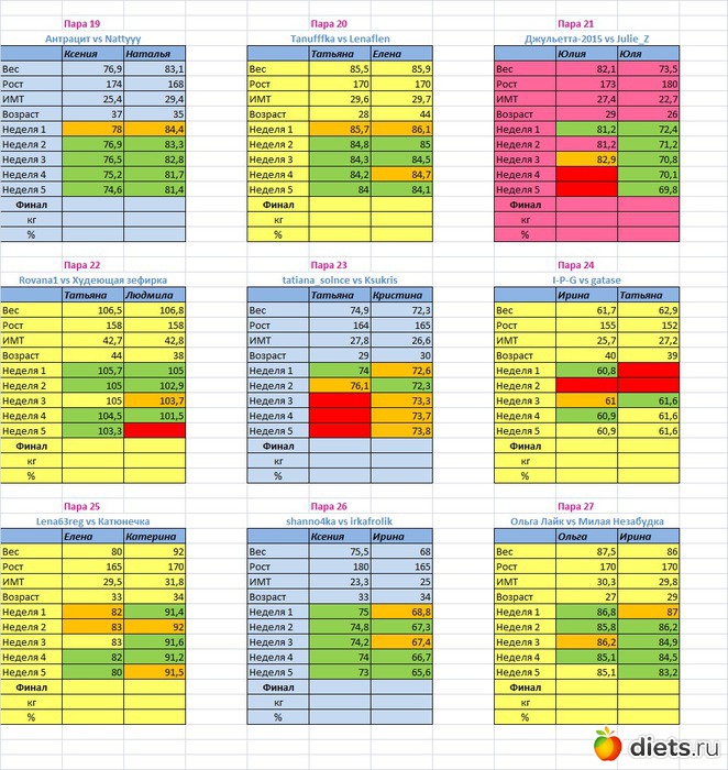 Зимушка-Зима хочу отметить девушек, которые потихоньку идут к своей целе (не каждую неделю показывали отвесы, но продержались 26 дуэль без привеса):