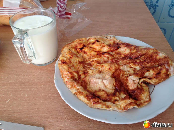Обед: яичница с томатной пастой и два стакана кефира 1%.