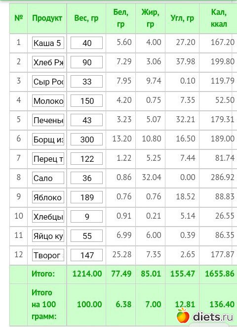 только сегодня привес получился,видать,из-за большого кол-ва жиров)) но,в - целом, отвесы всегда есть на ПК. Хорошая система