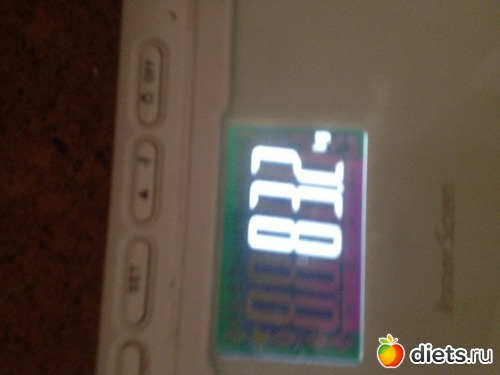 А здесь думаю ушла вода- результат бессолевой почти еды и разгруз на молокочае 1 день в неделю....2кг за неделю, считаю много и резко....Так что вернётся обратно, наверное...