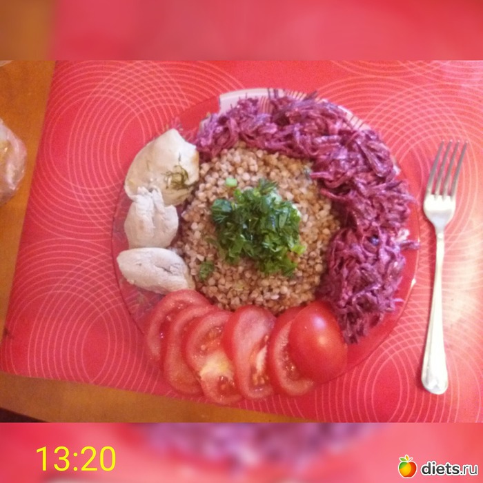 Индейка отварная, гречка, свекла со сметаной, помидор