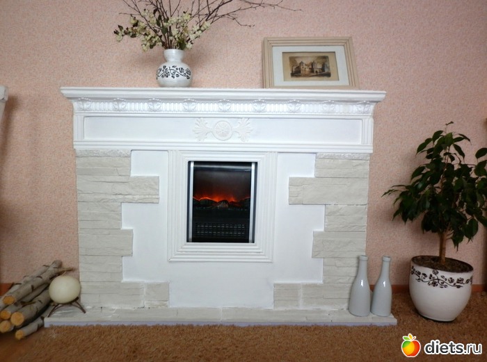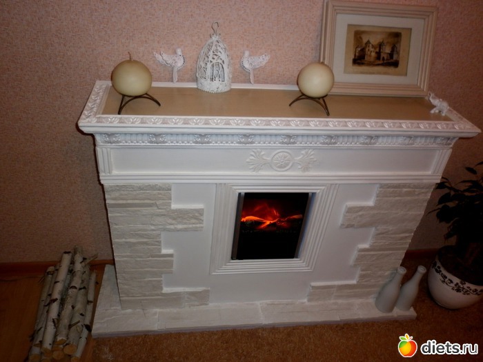 И тут я узнала, что существует такой замечательный материал - пеноплекс, с которым я могу работать сама. Поехали в Леруа Мерлен, закупили все материалы, и за несколько дней я сама, без помощи мужа, сделала камин!