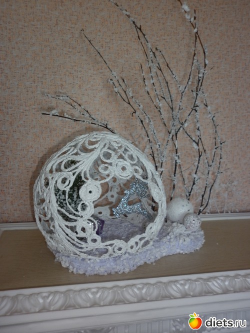 В перерыве ещё подруге сплела плафон на кухню: