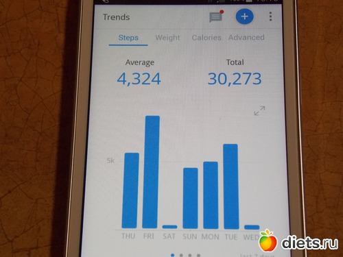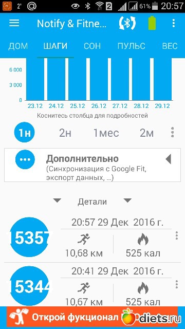 Сегодня чуть больше 15 000 шагов. Странно как-то. Я на дорожке после силовой тренировки прошагала 1.5 км, а браслет показал всего 1 200 шагов. Не может же мой шаг быть больше метра!