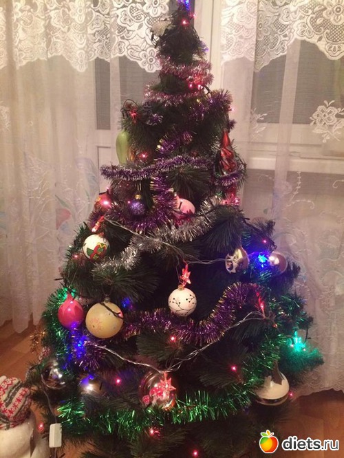 Встречали втроем в пижамах и с таблетками - я, малая и мама, хотя оливье конечно порезали, че там. Вот такая у моей мамули винтажная елочка, с игрушками еще из моего детства