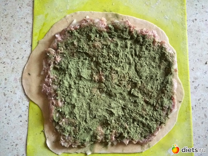 Этот фарш присыпала сухим шпинатом (его тоже надо было утилизировать):