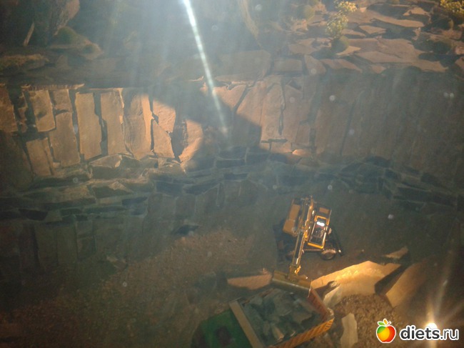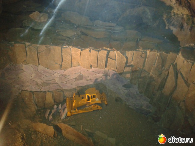 Входящих в музей встречает экспозиция, демонстрирующая процесс добычи камней.