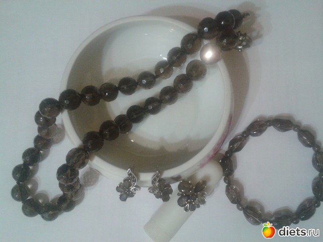 Есть у меня комплект из раухтопаза: бусы, браслет, серьги и кольцо.