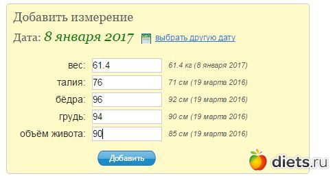 2. Вес на 8 января 2017 - 61,400 - праздники не прошли даром