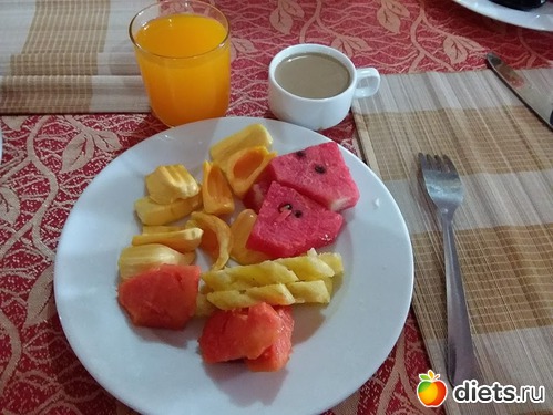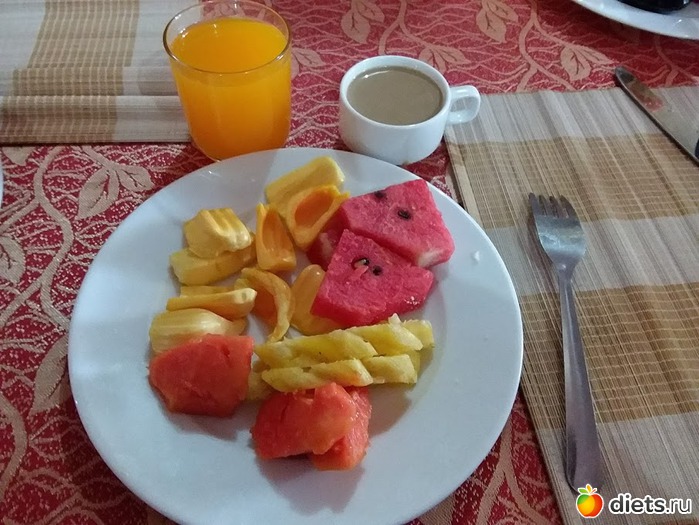 2 тарелка: ананас,арбуз,папайя и джекфрут.