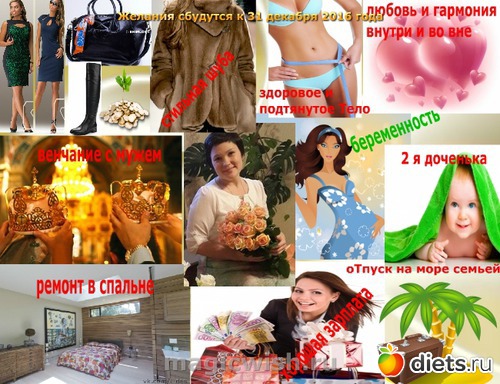 по поводу целей, поняла что была ошибка при постановке некоторых из них: исполнение не зависело от меня скажем совершенно: ну например беременность, я конечно посетила врача сдала кое-какие анализы, но это не всегда зависит от нас(по моему мнению) конечно я могла обратится к ЭКО, но это идет в разрез с моими личными убеждениями...в этом году попробую исправить этот "косячок": поэтому конечно помещу в мечты, но не в цели, тк те что зависели от меня были достигнуты в основном