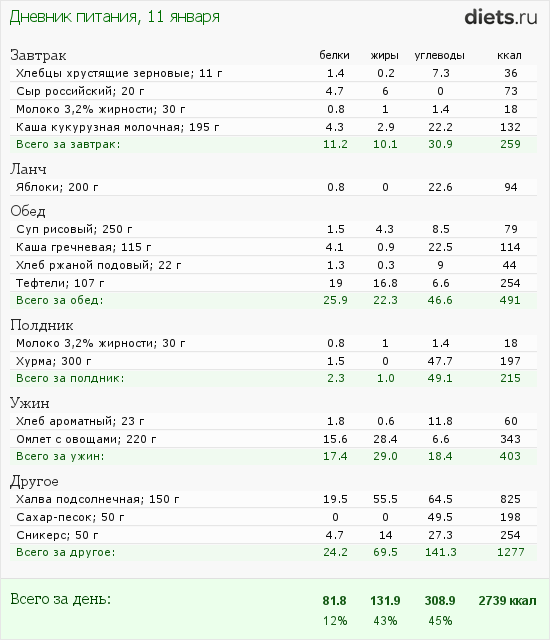 День сорван. Вечером налопалась до отвала сладостями. Причина - усталость, недосып, КД и нехватка углеводов при увеличении физической нагрузки. Стресс для организма. Для себя уяснила, что не буду объединять кардио и Джилиан в одну тренировку, после которой собственно и произоел упадок сил и нападение на углеводы.