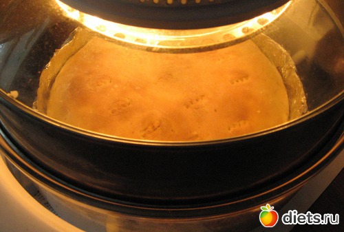 Сверху положила оставшееся тесто и поставила в Аэрогриль на нижнюю решетку, поставила увеличительное кольцо и включила АГ на 20 минут при температуре 170 градусов, скорость не регулируется.