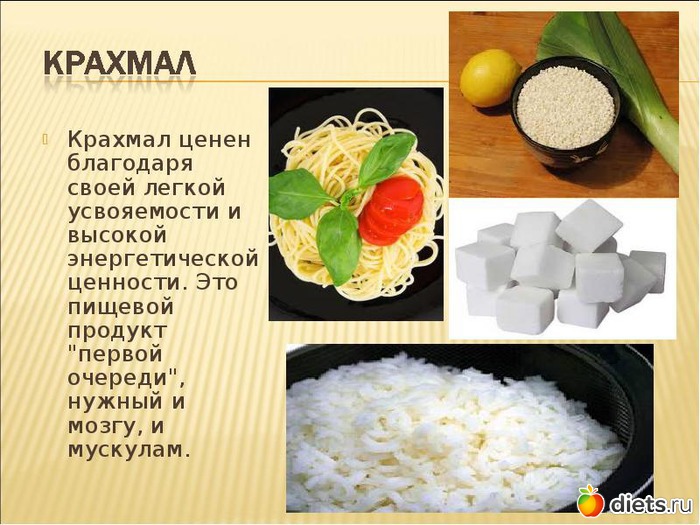 Что действительно регулярно требуется машине, так это хороший чистый бензин. Организм тоже нуждается в высококачественном топливе, которое сгорает полностью и позволяет ему работать без поломок. Таким идеальным топливом для человеческого организма является крахмал — сложный углевод.