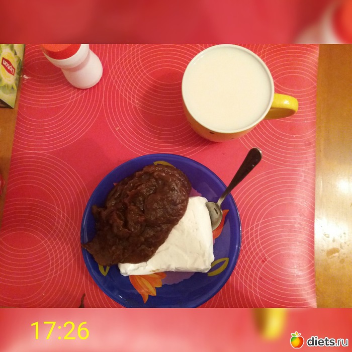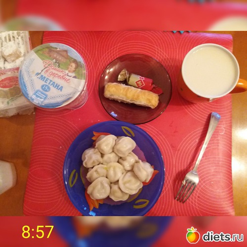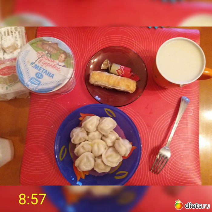 . Поэтому, навернула пельменей с маслом и сметаной, трубочку с вишней, любимую конфетку и чай с молоком.