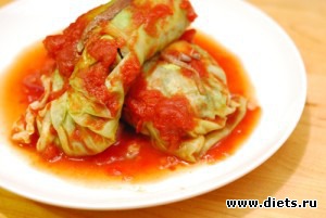 4. Сложить голубцы овощные в кастрюлю, залить подсоленной нежирной сметаной и тушить в духовке около 40 мин.