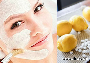 1 рецепт. 4 – 5 таблеток аспирина растереть в порошок, добавить к нему 2 столовых ложки лимонного сока. Когда аспирин растворится, раствор можно наносить на лицо.