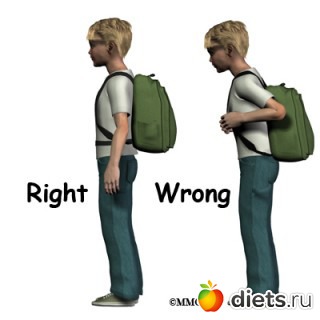Когда несете тяжелую ношу в одной руке, вторую руку плотно прижимайте к бедру (этот прием позволяет правильней перераспределить нагрузку на мышцы спины).