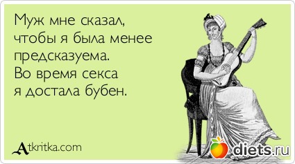 Есть у меня знакомый, 21 год. С девушками отношения не клеятся от слова совсем. И решил он, значит, погадать. В Интернете нашёл гадание по книге (задаёшь вопрос, называешь номер страницы и строку, на которой будет ответ)... Дальше со слов моего знакомого: "Вопрос у меня был интимный, вот я и решил, что страницу выберу 69, а строку - 9. Ну, я и задал свой вопрос: искать мне девушку или нет? Книга "ответила": зачем тебе это, у тебя же есть рука, она и поможет тебе.."