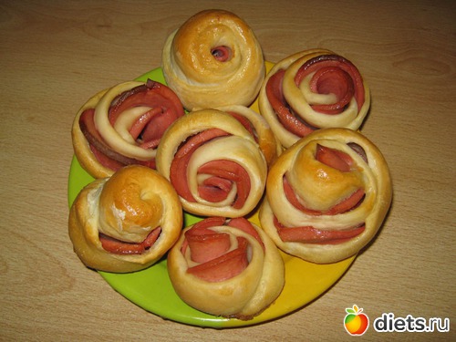 По просьбе дочери - розы из колбасы (правда на этом фото тесто - дрожжевое)