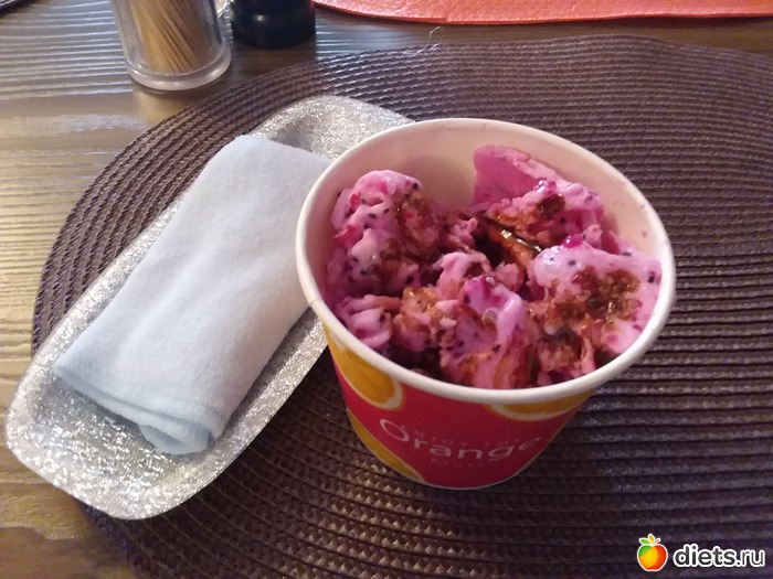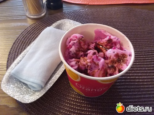 Потом я захотела мороженку, но не простую а полезную, которую делают при тебе из йогурта без сахара и фруктов..такая вкуснятина и на диете можно иногда себя побаловать, у меня для этого как раз воскресенье...