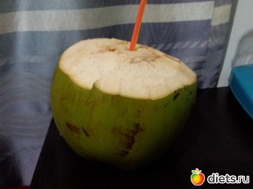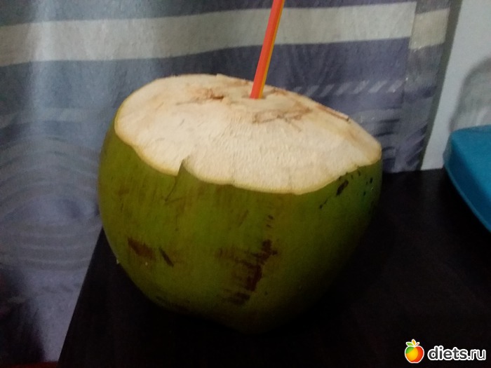 Вернулась домой, всех накормила ужином, сын приехал в гости и его накормила. Муж уехал в тренажерку. Я съездила за водой и себе купила кокос..