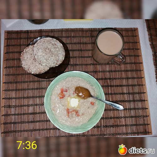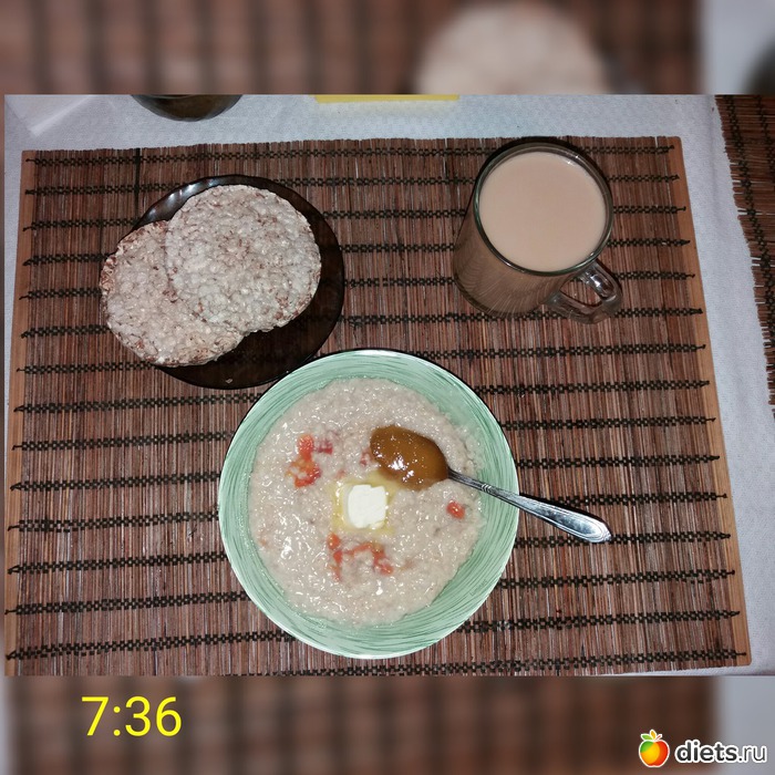 З: овсянка на воде с маслом, мёдом и курагой, цикорий со сливками, хлебцы