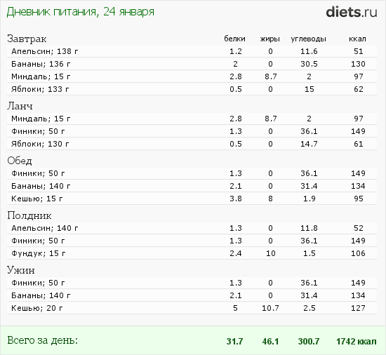 Вторник вес 80,4 кг калорийность углеводного дня 2222 ккал после пересчета макарон, Привес 400 г. Вся водичка осталась во мне - пальчики не сжимаются, надеюсь за витаминный день сольется.