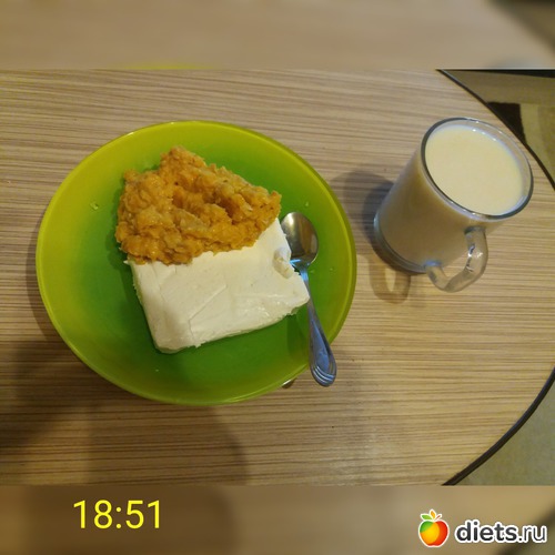 У: творог 5%, "повидло" (яблоко, курага, чуть молока), чай с молоком