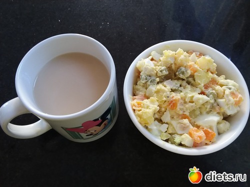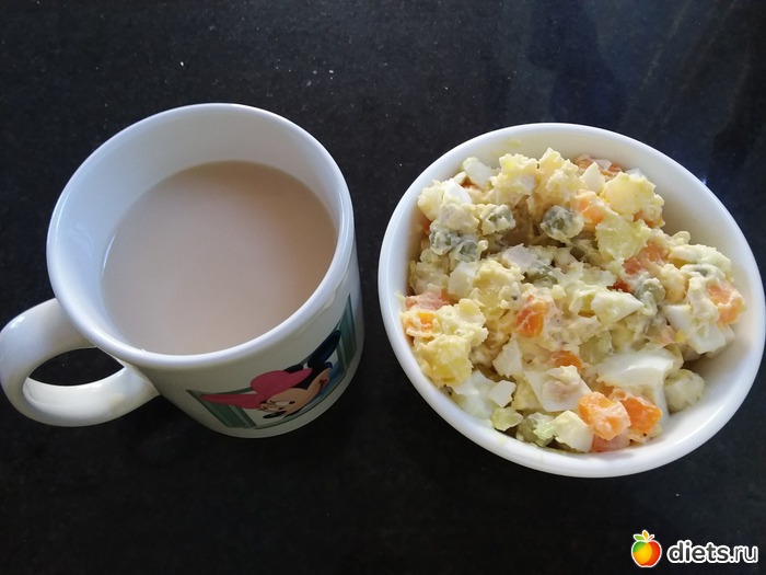 Неправильность обеда в салате оливье, там майонез и вареный картофель, обычно я его их не ем.