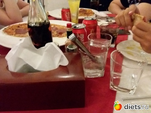 Поехали встретиться с друзьями...сначала заехали в пицерию, все пицу ели я воду пила...