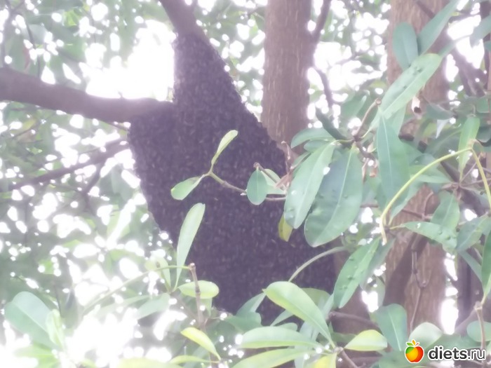После обеда увидела напротив балкона на дереве рой пчел, домработница напугалась, когда увидела что младшие трясли ветки чтобы рой согнать...но через час он улетел и все успокоились...