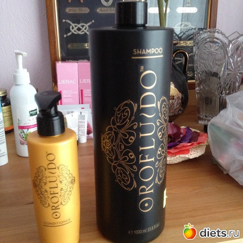 Продолжение истории: в очередной раз пошла покупать шампунь, а мне нужен был большой объем 1 л, так как хотела поделиться с мамой и на дачу отделить, короче решила купить сразу большой объем, и как всегда попросила предложить самый качественный для моих окрашенных и довольно длинных волос (до лопаток).
