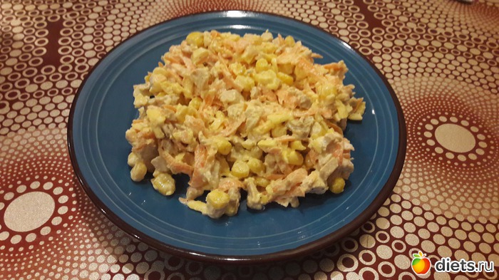 Ужин - салат с курицей и овощами, заправленный 15% сметаной