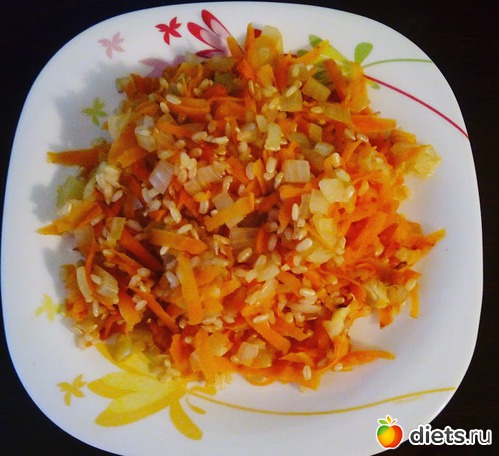 На утром у меня была каша, рис нешлифованный с луком и морковкой, в мультиварке варила, без специй и масла.