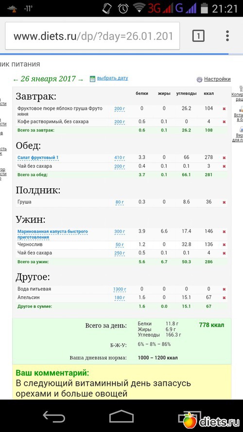 Привет девочки)! Сегодня у меня тоже ушло -500. Очень даже я рада. Тренировка помогает хорошо) Ночью все болело особенно руки спать толком не могла, да и че то чувство голода не покидало( лежала утро ждала, но сон все же одолел. Подъем был ранний для меня) На завтрак я себя побадовала фректовым пюре из груш и яблока и кофе...
