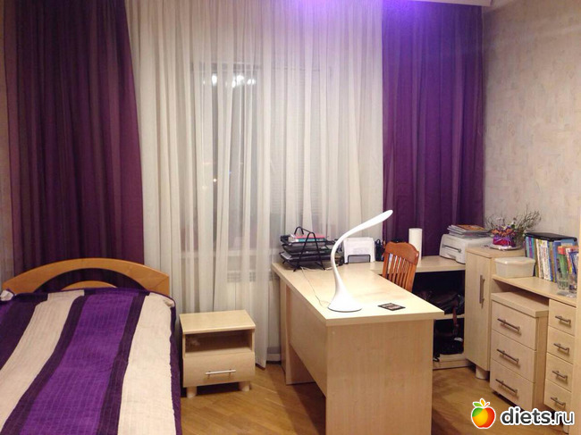 А почему стол так нерационально расположен в комнате? И если дочь уже взрослая, может стоило сразу позаботиться о более широкой кровати?