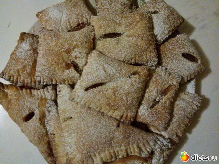 Наконец - то закончилось мое яблочное повидло!!! Его остатки ушли в начинку к слоеным "пирожкам"