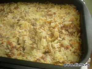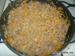 4. Добавить к зажарке фарш, посолить по вкусу и тушить все 15 минут.