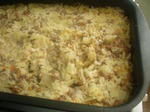 6. Смешать все подготовленные составляющие - рис, капусту и фарш с зажаркой. Выложить в емкость для запекания.
