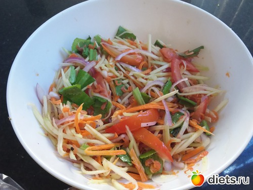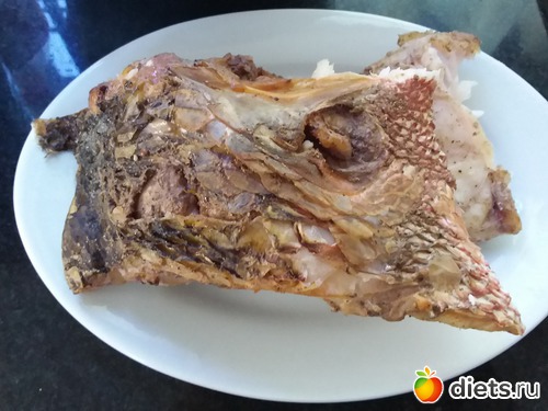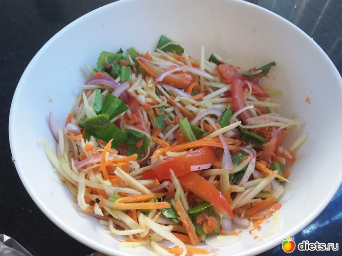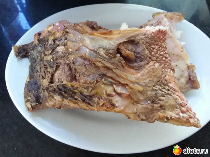 Обед вторая половинка ред снепера и салатик ( был сделан специально для меня: зеленое манго, помидорка, красный лук, морковь, креветки сушеные, какая то травка..)очень вкусный...