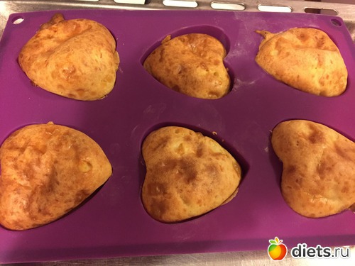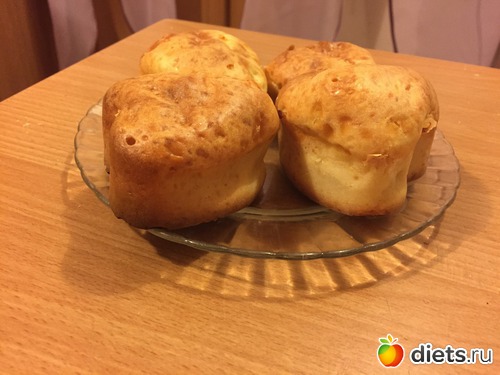 Оставшийся творог вместе со сливками вывалива в чашу блендера, добавила 3 ст л сахара, 2 яйца и 1 ст муки, 1 ч л разрыхлителя. Блендером перемешала в однородную массу. Разложила тесто в форму для кексов.
