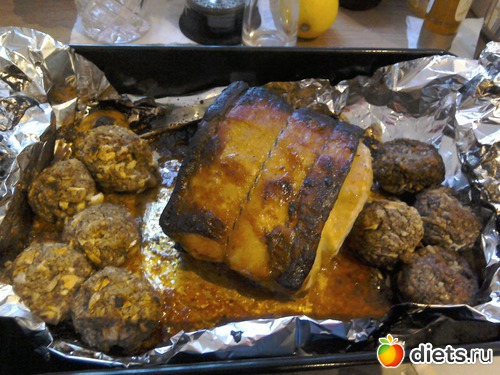 Сегодня я готовила свинину в фольге, к свинине ещё курочку грудки, для деток. И шарики рядом со свининой, это то чем можно зафаршировать курочку целую или как отдельное блюдо запечь, как это сделала я.