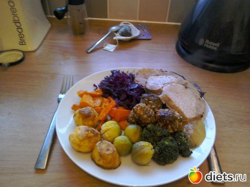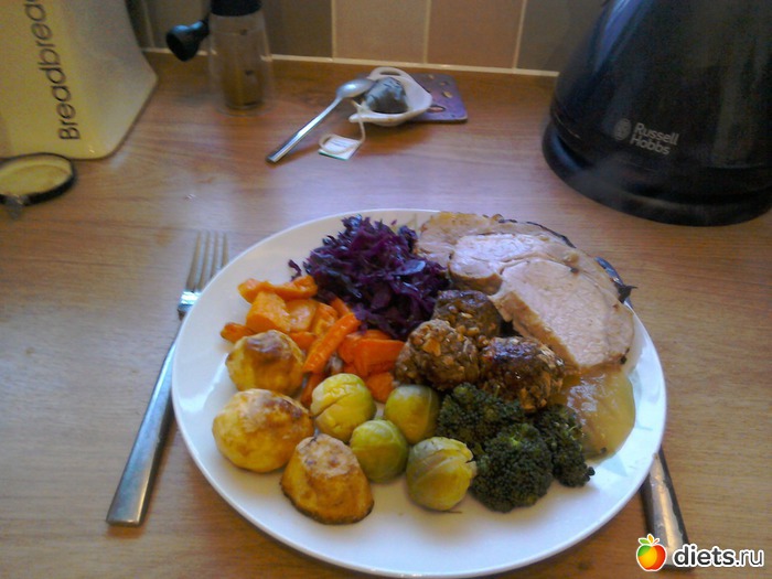 Как и обещала народу, выставляю фото традиционного английского воскресного обеда. Почти такой же готовится на Рождество здесь.