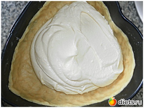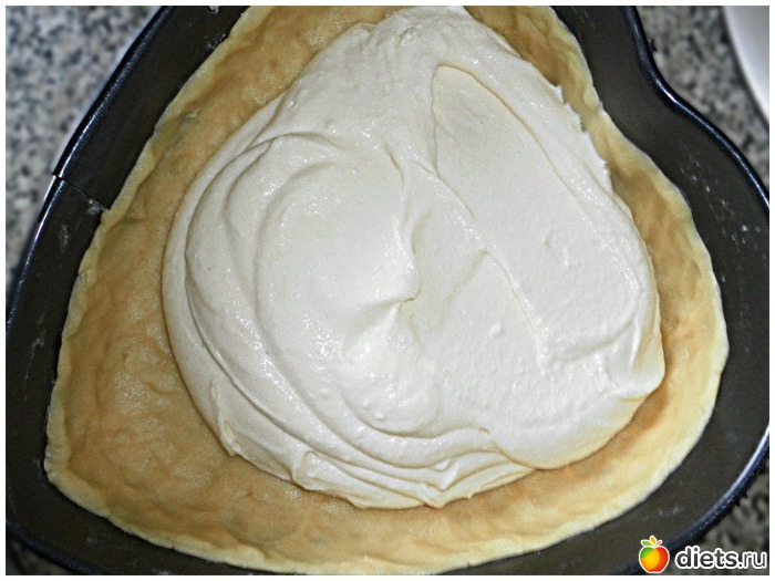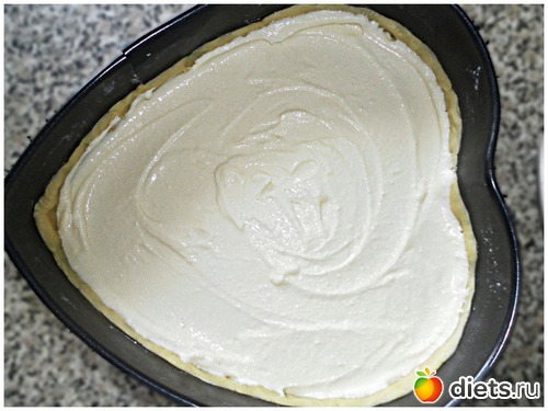 Вынуть тесто из холодильника и выложить в форму сделав бортик (диаметр формы у меня - 24 см) слоем 0,5 см.