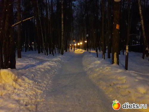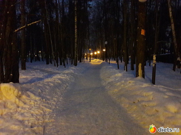 Аллея в парке к станции, жаль, короткая, очень хорошо утоптанный снег, классно бегать: